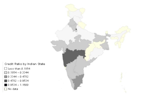 The reform of the banking sector might have a different impact across Indian states depending on the degree of financial development of each location. One way of measuring differences across Indian states in the characteristics and degree of development of their financial institutions is to rely on the credit over GDP ratio at the state level. Figure 1 presents the distribution of credit over GDP ratio across 21 Indian states in 1997. As can be seen, the level of financial development captured by the credit ratio is heterogeneous across regions.