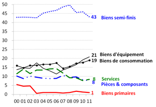 Sources : CEPII, bases de données BACI et CHELEM-Balance des paiements.