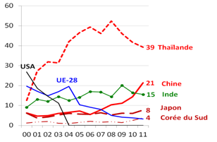 Note : les chiffres à droite des courbes correspondent à la valeur de la dernière année.