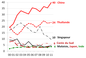 | Chine | 1 352 | 6 104 | 7 951 | 10,2 | 10,8 | 9,3 | ||