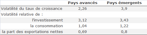 Tableau 1 - Volatilité macroéconomique dans les pays avancés et émergents