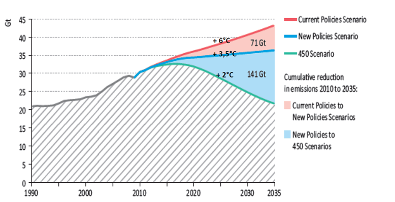 Scénarios de l'AIE : +2°C, +3.5°C et ... +6°C