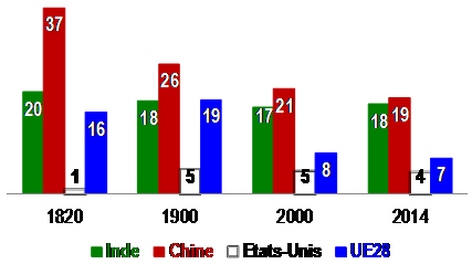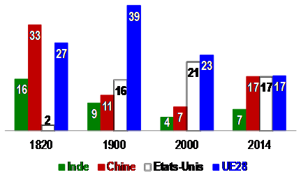 Graphique 3 : Évaluation de la part dans le total mondial, 1820-2014 (en %)