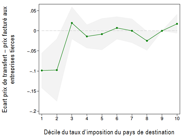 Graphique – Ecart estimé entre prix de transfert et prix facturé aux entreprises tierces selon le taux d’imposition du pays de destination |