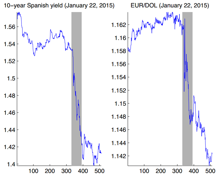 Figure 1 – 10-year Spanish bond yield and EUR-USD exchange rate on Jan. 22, 2015