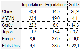 | Tableau 3 : Commerce par partenaire en 2014, en milliards de dollars |