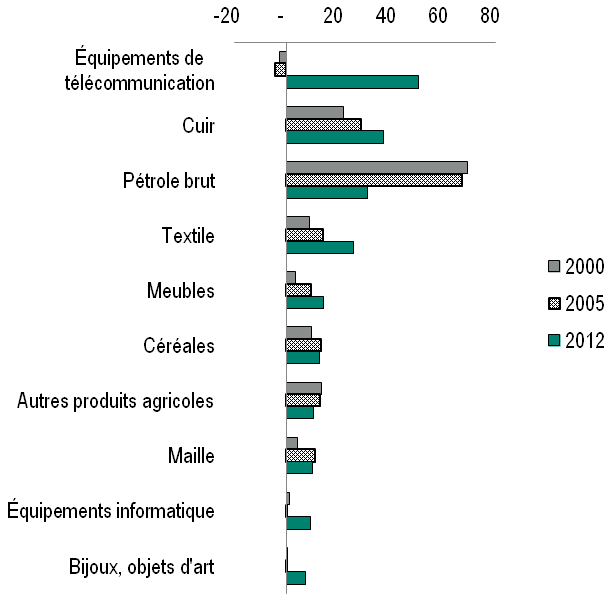 Graphique 1 : Avantages comparatifs dans l’industrie, Vietnam, 2000, 2005 et 2012. |