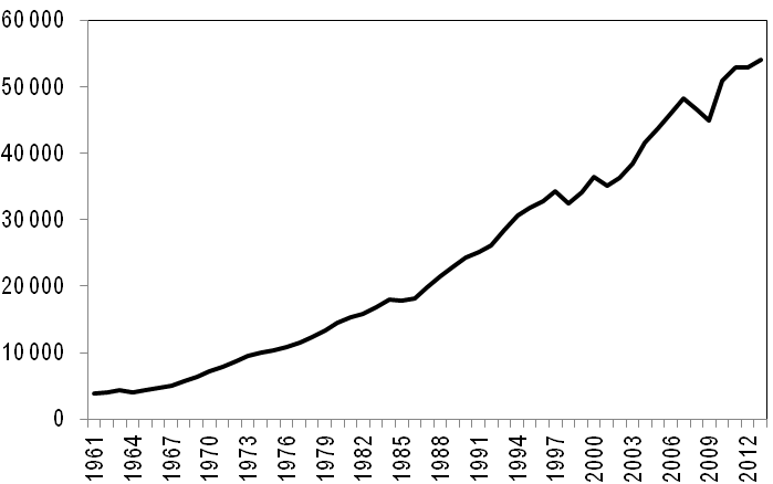 Graphique 1 : PIB par habitant, en dollars constants de 2011.