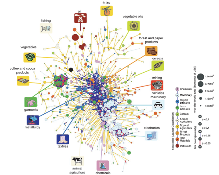 Hidalgo, C. A., B. Klinger, A.-L. Barabási, and R. Hausmann, 2007, The Product Space Conditions the Development of Nations, Science, 317, 482-487.
