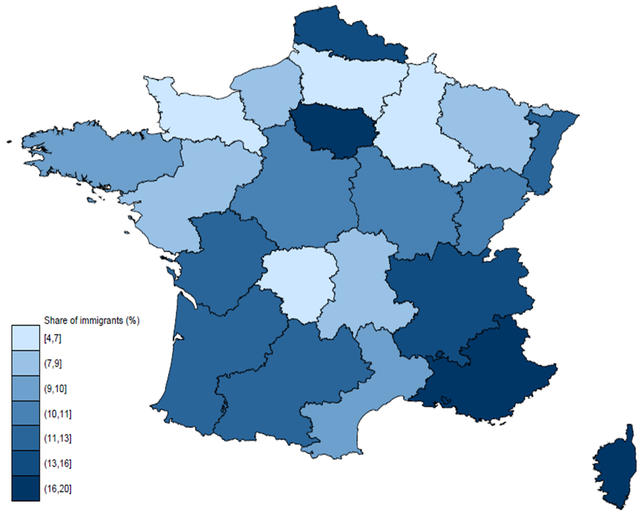 Figure 1 - The distribution on migrant workers across French regions in 2005 |