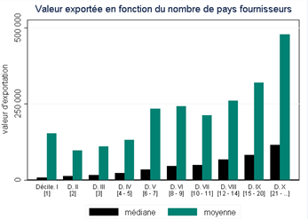 1.b – valeur exportée (en euros) selon le nombre de pays fournisseurs