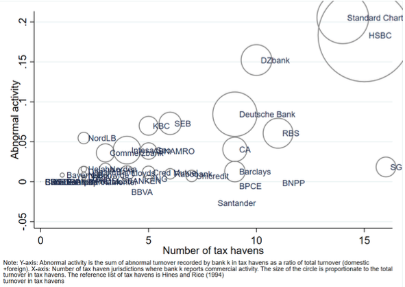 [1] The NGO Oxfam publishes an annual report on the activity of EU banks in tax havens based on these data. We are thankful to them for sharing with us their original database, including the 2015 data of 20 banks.