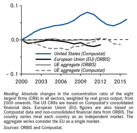 Since 2000, concentration has increased in the US while it has remained relatively stable in the EU (see Figure 1).
