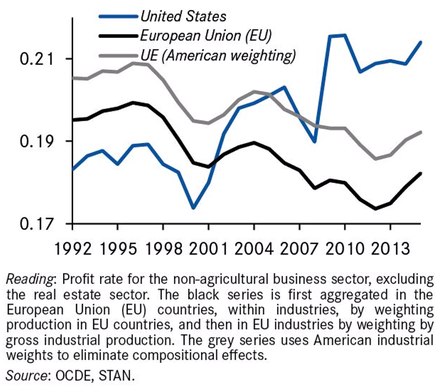 Figure 2 Profit margins in the US and EU, 1992-2015