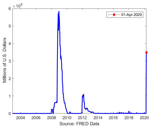 Le 19 mars, la Fed a annoncé que, outre les facilités crées en 2013, elle avait signé des accords de swap pour une durée de six mois avec les banques centrales de 9 pays pour des montants allant de 30 à 60 milliards de dollars (Australie, Brésil, Danemark, Corée, Mexique, Norvège, Nouvelle Zélande, Singapour, Suède).