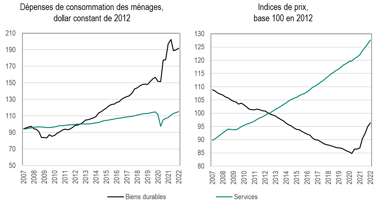 Une réorientation de la demande des services vers les biens durables : un choc de demande partiel