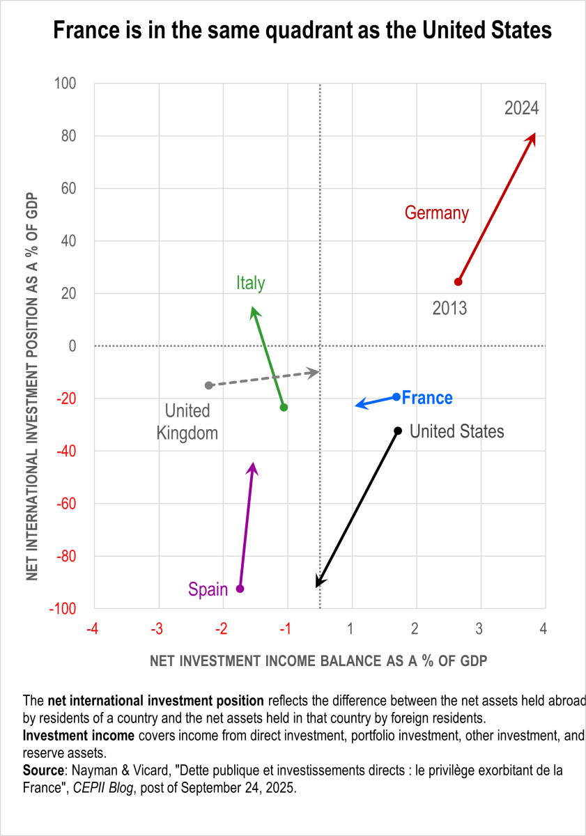 Despite its clear net debtor position, France receives more investment income than it pays out — a form of “exorbitant privilege” long associated with the United States.