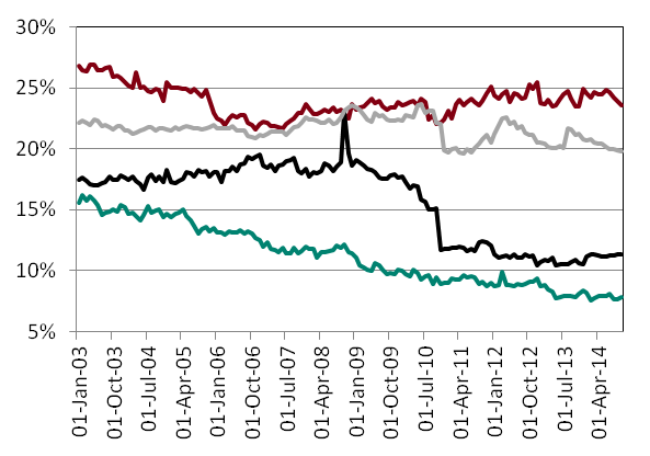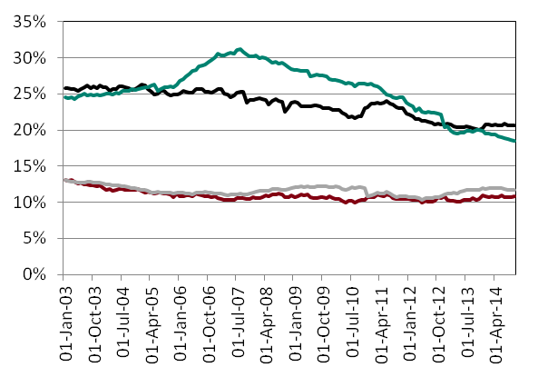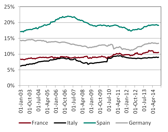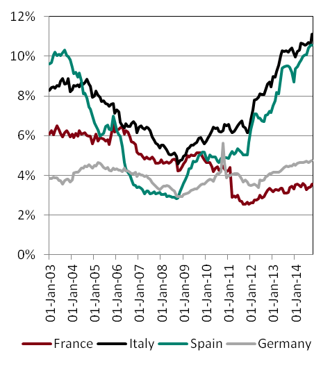 Sovereign bonds purchase program expected in 2015 seems very different from the two previous programs –SMP (Securities Markets Programme) and OMT (Outright Monetary Transactions)– aimed at limiting the financial fragmentation in the euro area. Since the announcement of the OMT in 2012 financial fragmentation has considerably declined and sovereign spreads between member countries are no longer a threat to the euro area stability. The objective of the sovereign bonds purchases this time is to bring down the overall level of long term rates in order to stimulate investment and consumption in the euro area and thereby increase inflationary pressures.