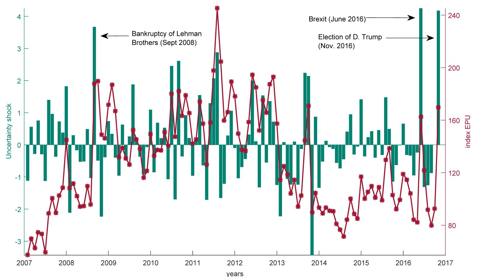 The World Bank recently revised downwards its GDP growth forecast for 2017 by putting forward increased uncertainty caused by the election Donald Trump. A few months ago, the large Brexit vote also resulted in pessimistic predictions [1]. Yet, these predictions had been contradicted by several major macroeconomic indicators, compelling the Bank of England’s chief economist to admit that Brexit did not lead to “concrete effects” - Paul Krugman has also cast doubt about the macroeconomic effects of Brexit [2].