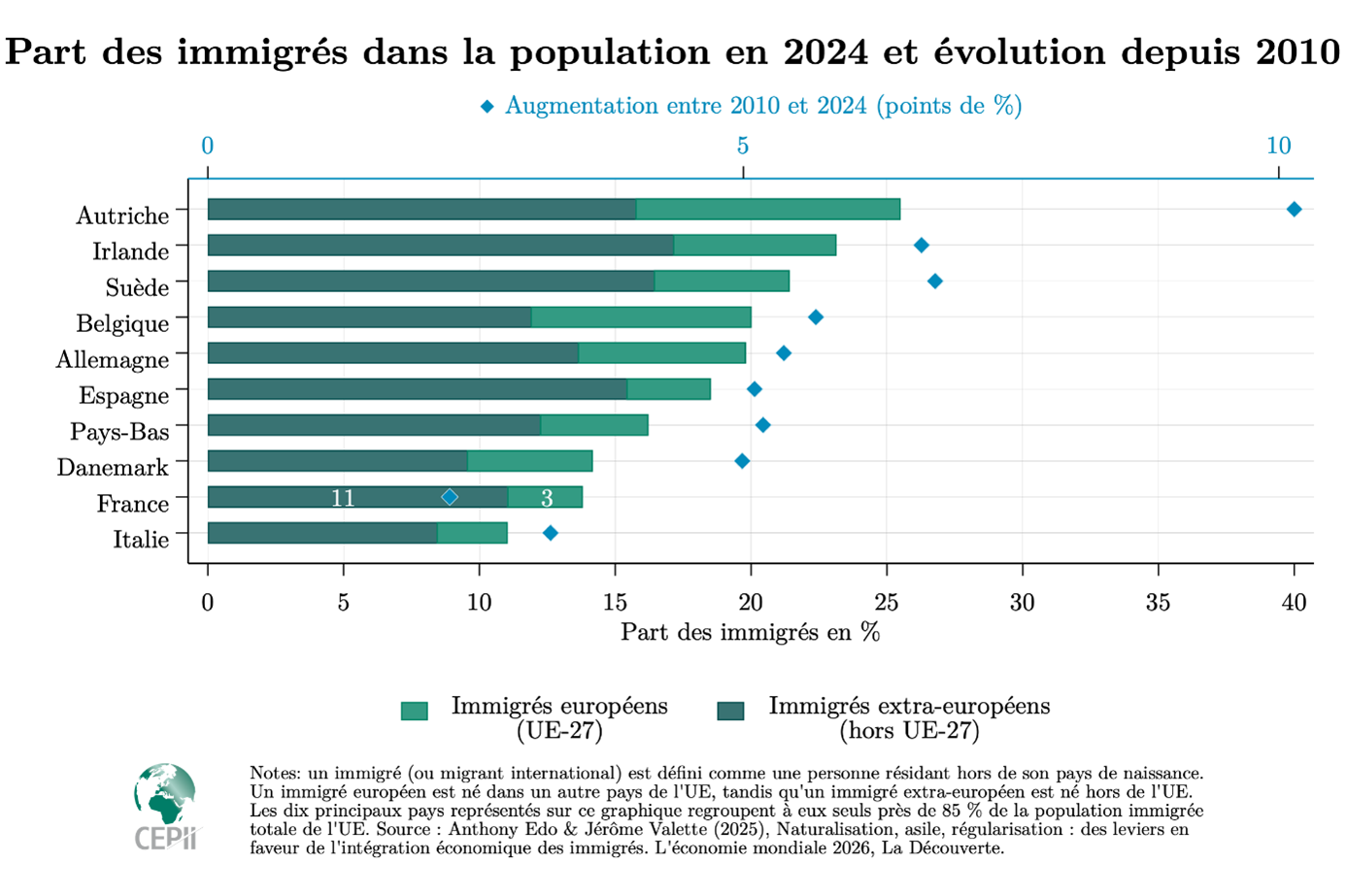 Part des immigrés en France : un niveau et une progression inférieurs à ceux des principaux pays d’accueil européens