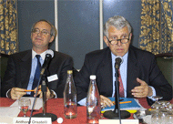 | Anthony Orsatelli (CDC Ixis Capital Markets) and François David (CEO, Coface), during the seminar British Business and the Euro organised in London |